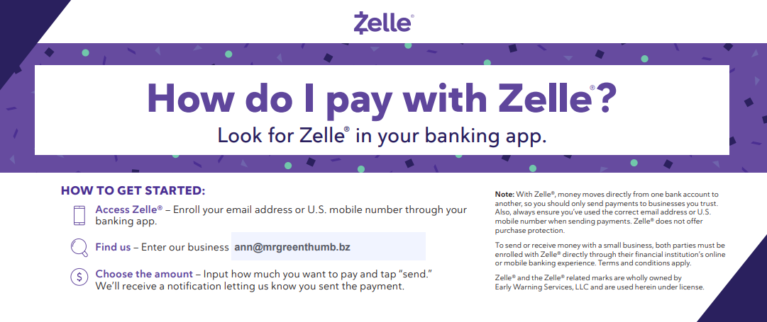 WE NOW ACCEPT ZELLE